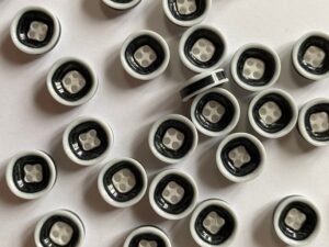 These are definitely not usual synthetic buttons. Glossy ceramic, matt, laser decorated. High quality polyester & nylon buttons produced in conformity with OEKO-TEX standards.